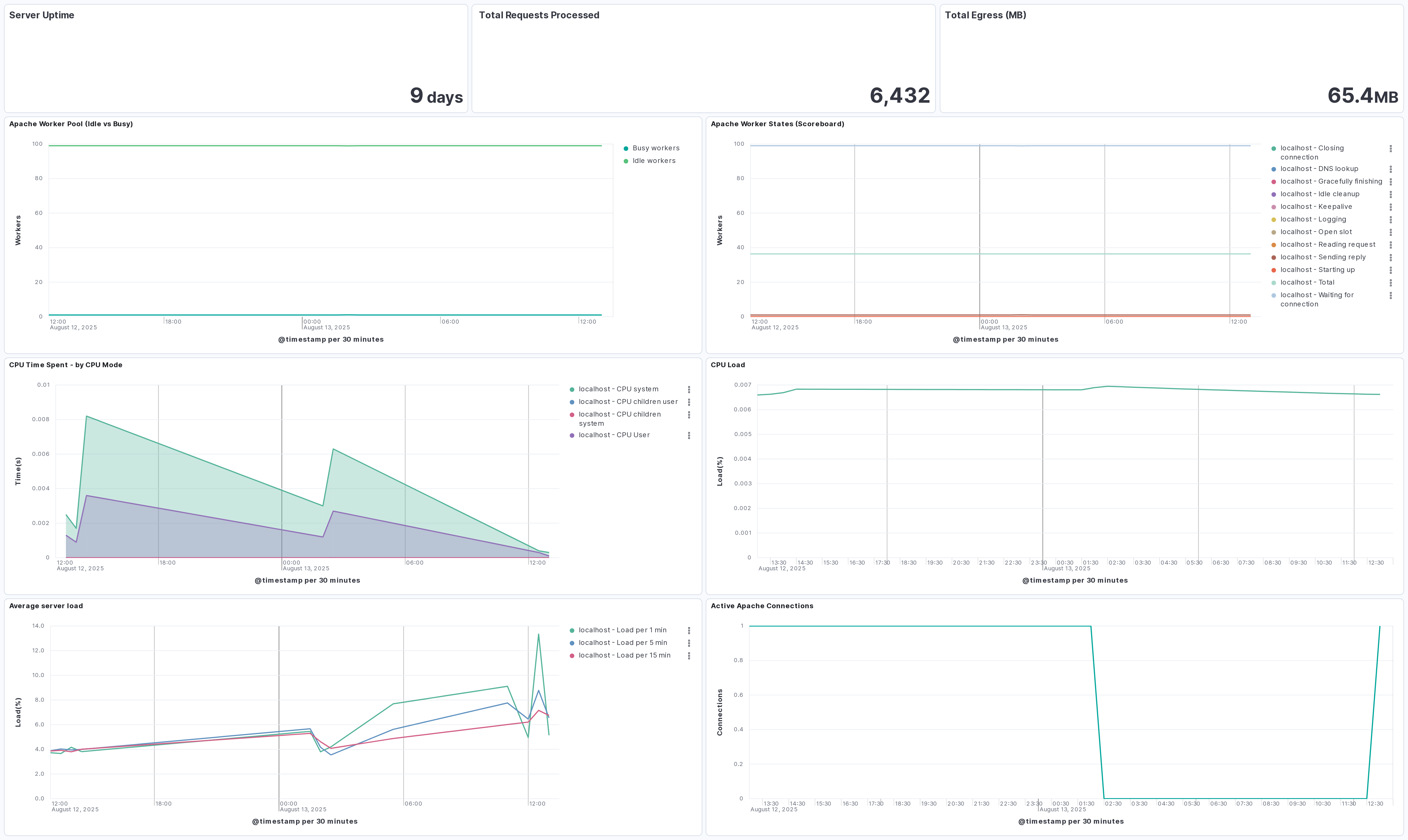 Use the Apache OTEL integration to collect performance metrics from your Apache servers. Then visualize that data in Kibana, create alerts to notify you if something goes wrong, and reference metrics when troubleshooting performance issues. Apache server exposes metrics through its status module, mod_status.