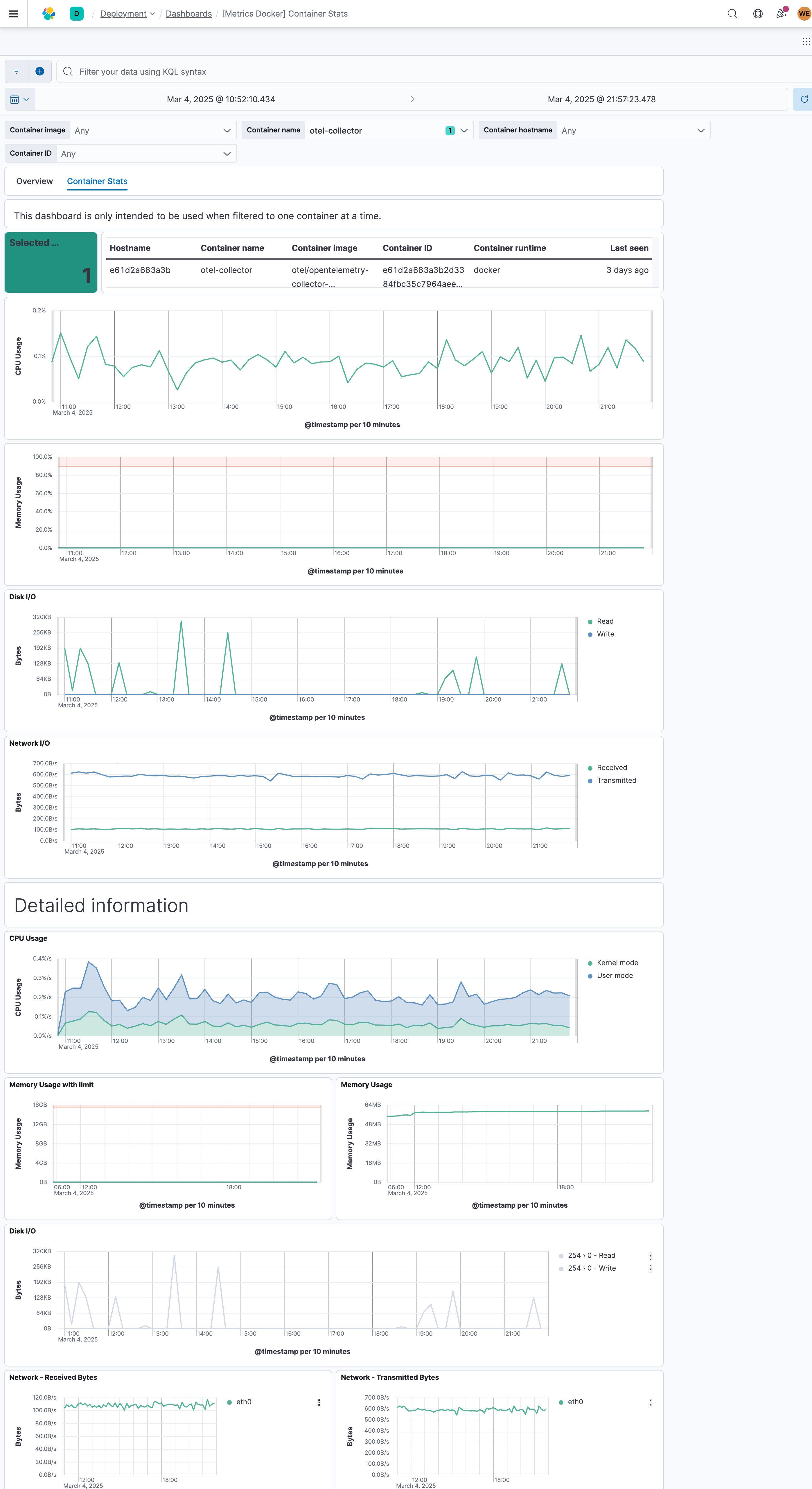 Additional configuration options are available in the OpenTelemetry Docker Stats Receiver documentation. The configuration options available will depend on the version of the OpenTelemetry Collector you are using.