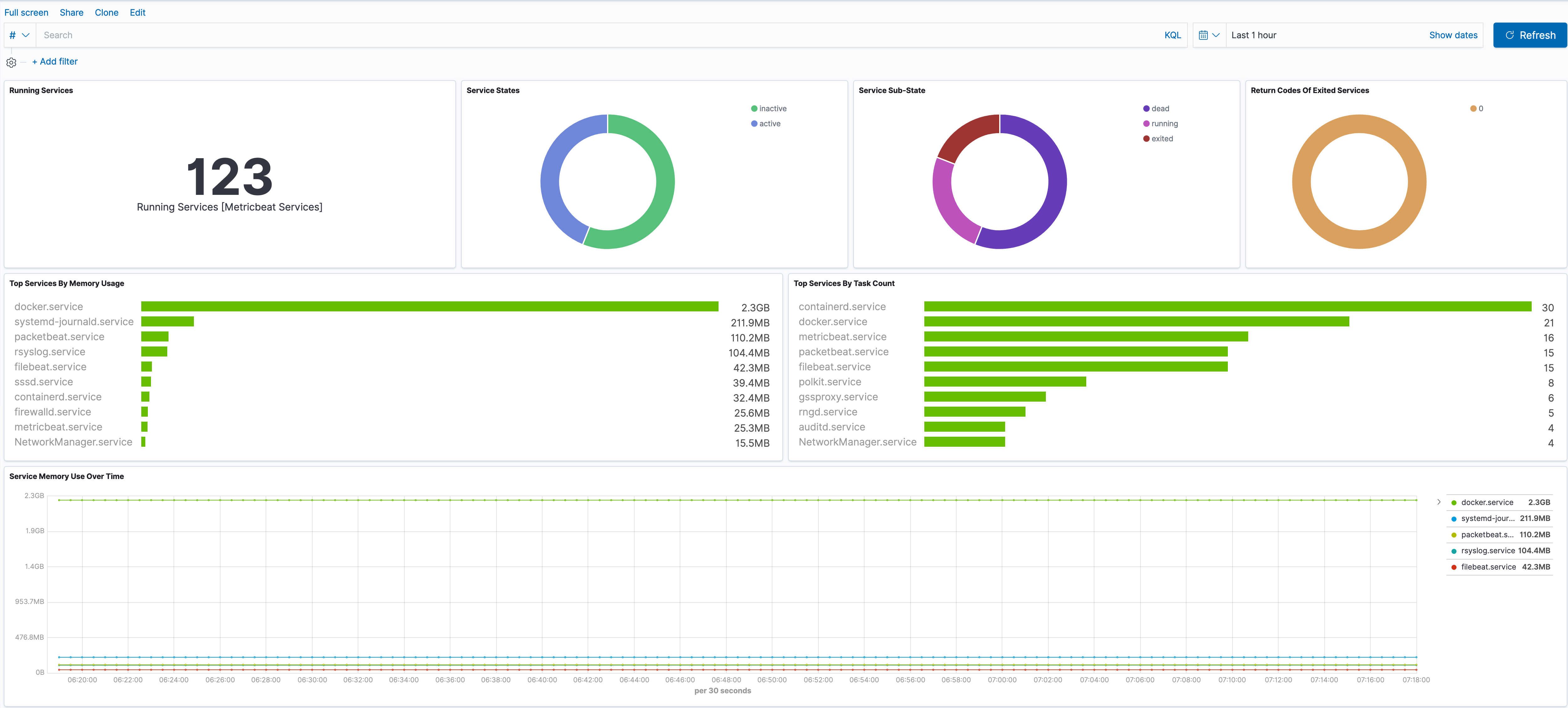 For example, you could install the Linux Metrics integration to send metrics to Elastic. Then, you could view real-time changes to service status in Kibana's [Metrics Linux] Host Services Overview dashboard.