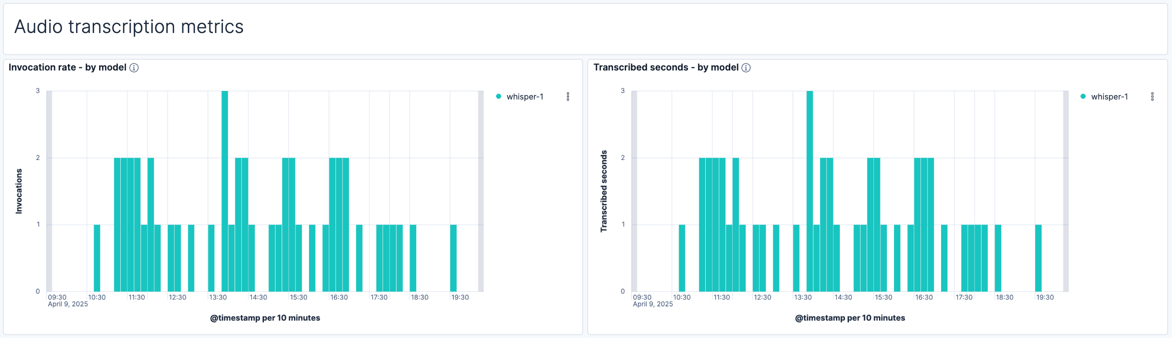| openai.audio_transcriptions.seconds | Number of seconds processed | long | s |